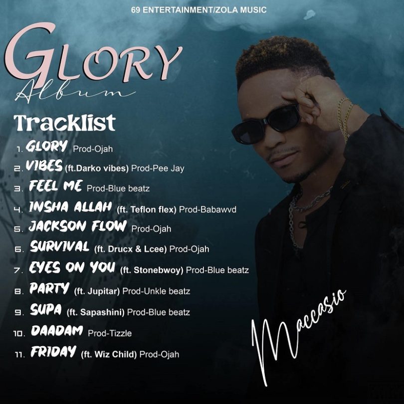 Maccasio (Sherif Majeed), a super talented Ghanaian artiste, has released his much-awaited studio project titled “Glory Album” in 2022, featuring Stonebwoy, Wiz Child, Sapashini, Jupitar and other top artistes with productions from top record Producers in the country.
